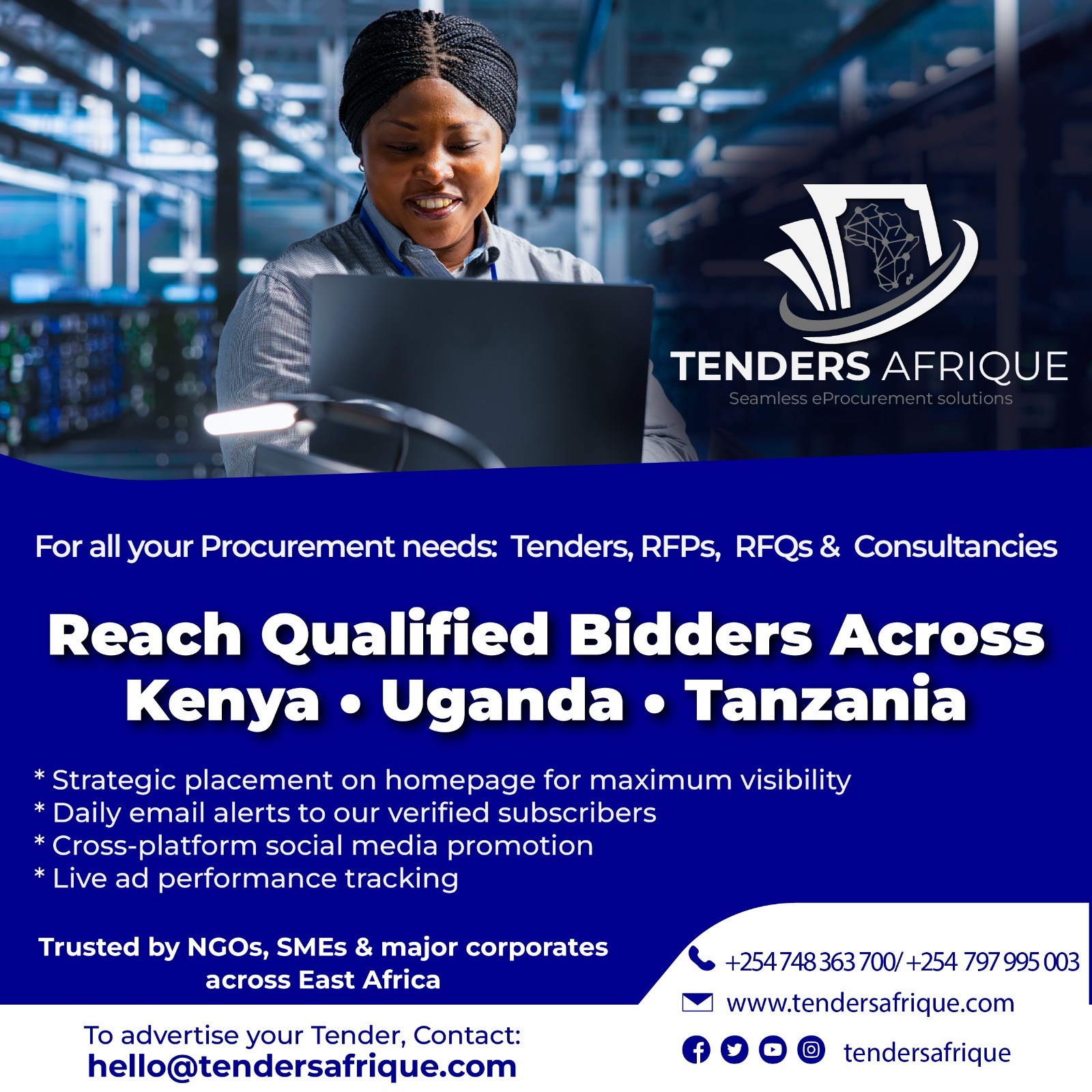 - Use keywords from tender titles or descriptions